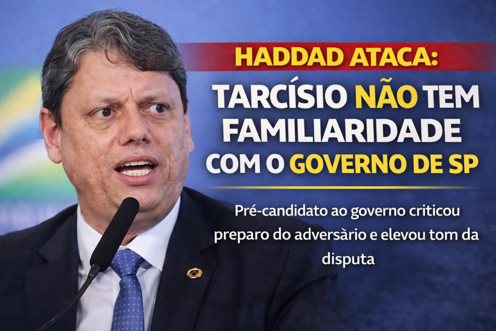 O pré-candidato ao governo de São Paulo, Fernando Haddad, afirmou que Tarcísio ainda não tem “nenhuma familiaridade” com a estrutura e o funcionamento do governo paulista. A declaração foi dada durante uma coletiva de imprensa realizada na capital, em mais um movimento que acirra o embate político em torno da sucessão no maior estado do país.